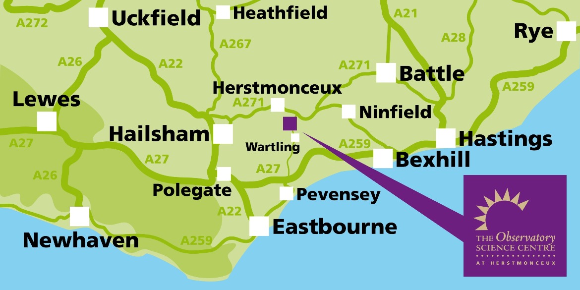 In the 1950s this site was specifically chosen to be the new home of The Royal Greenwich Observatory: set in the midst of the Sussex countryside, away from light pollution with the dark skies that were perfect for astronomers. Sadly in modern times, it cannot be readily accessed by public transport.