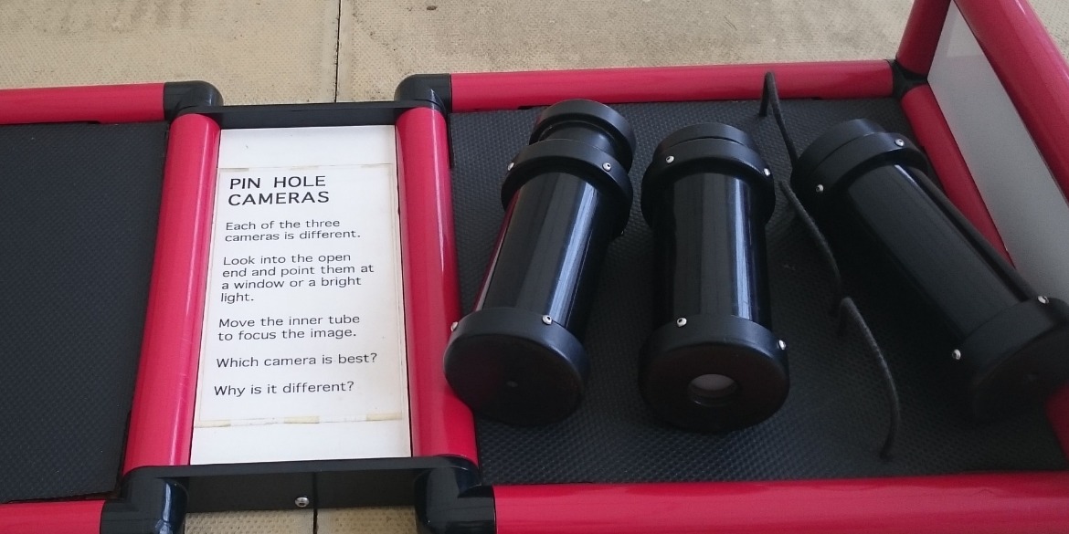Observe a light or bright object through the three different pinhole cameras. See the differences.