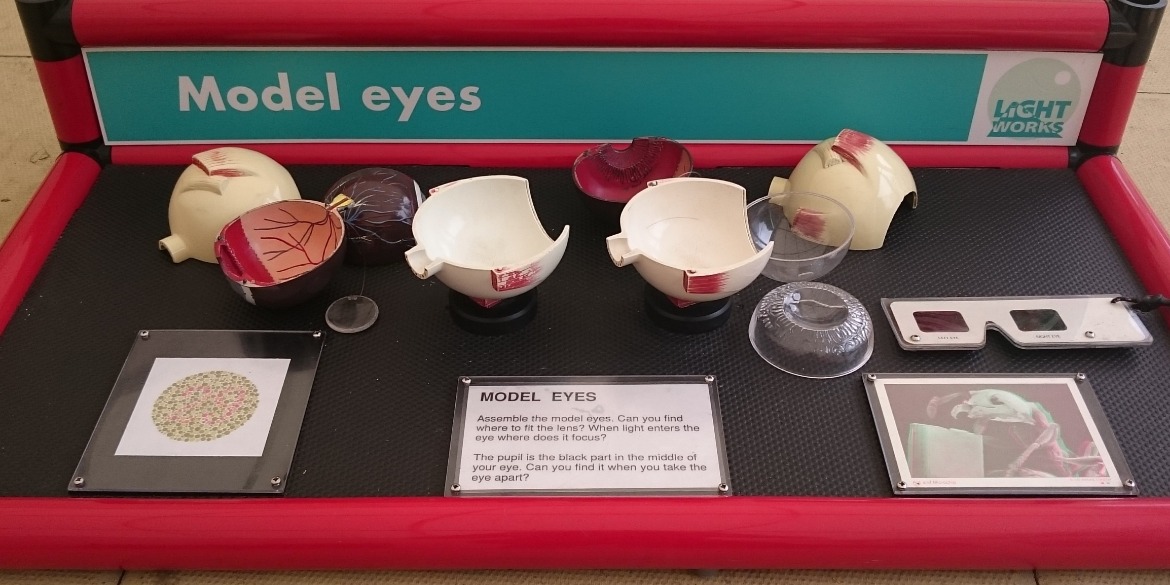 Dismantle the large eye models and remake them. Use the 3d glasses to view the image.