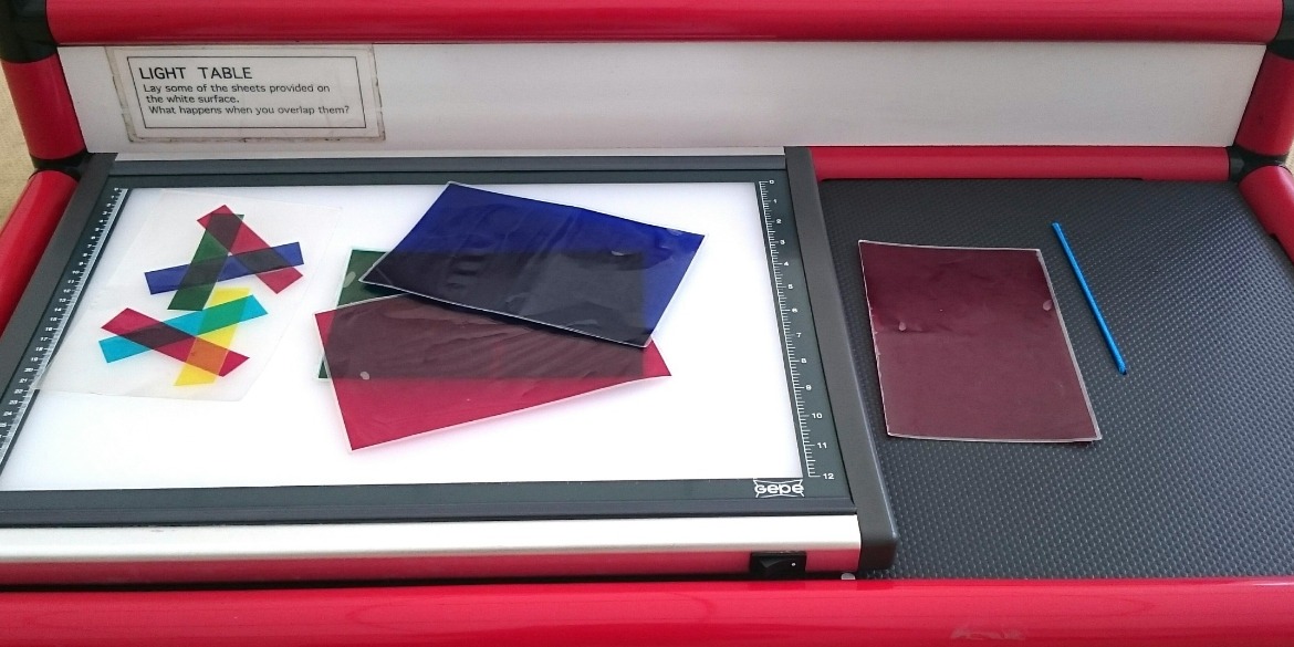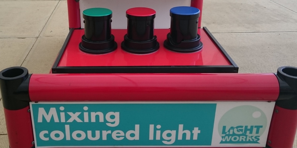 Project 3 coloured lights onto a screen and observe the mixed colours and the shadows of objects.
