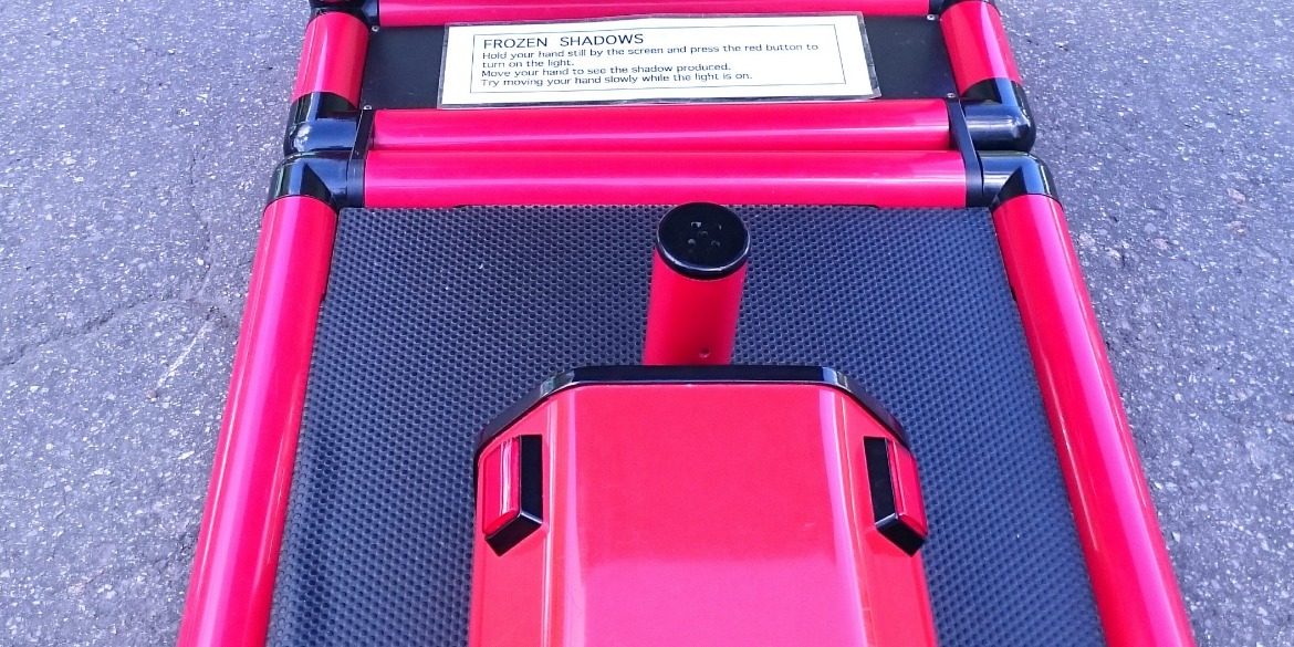 Place an object on the photoluminescent screen and see how the shadow persists for a while after using the light.
